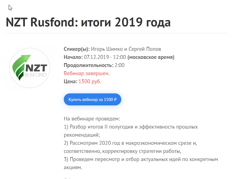 [2stocks] NZT Rusfond: итоги 2019 года. 07.12.2019 (Сергей Попов, Игорь Шимко)