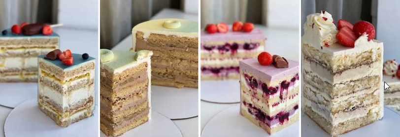 • Пина колада: банановый бисквит, пропитка, сырно-сливочный крем, кокосовый мусс и ананасовое компоте