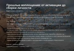 - знакомство с самим собой через осознание влияния уже активных воплощений, а так же технологии коррекции нежелательных влияний на личность и событийность;