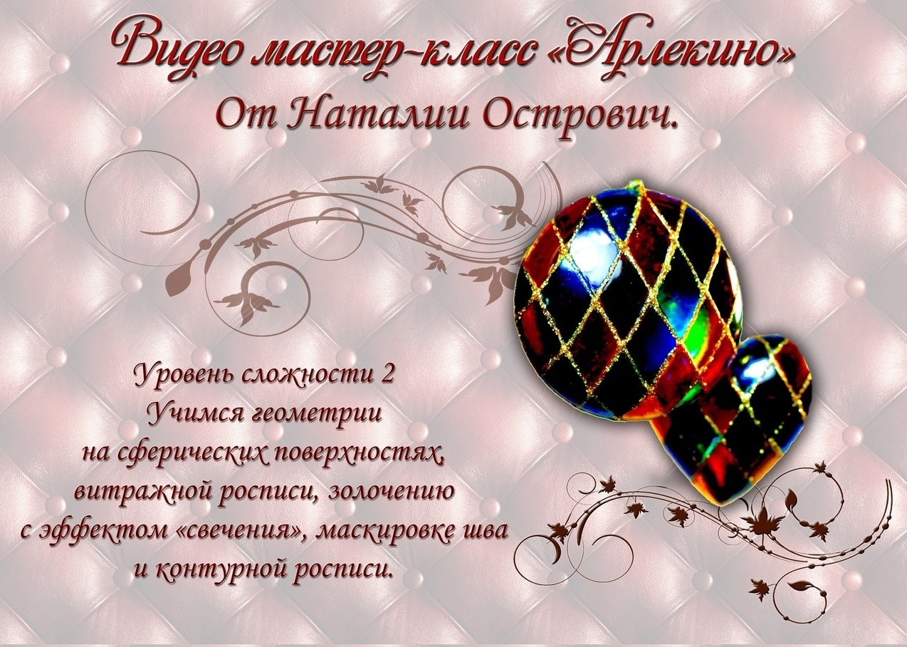 Учимся геометрии на разных сферических поверхностях (построению и переносу чертежа), витражной росписи, золочению с эффектом 'свечения' изнутри, маскировке шва и дополнению фурнитурой.