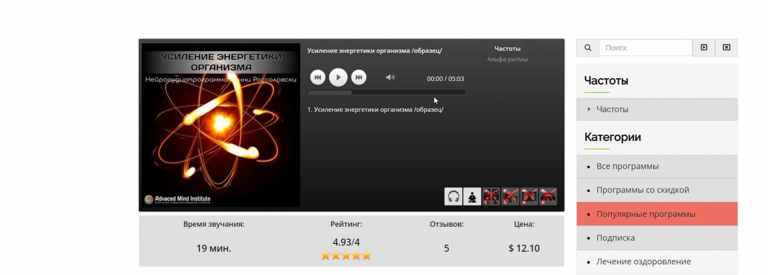 - Программа «Усиление энергетики организма» имеет ряд особенностей. Если вы будете соблюдать требования, изложенные в этом описании, то почувствуете результат немедленно, уже после первого прослушивания.