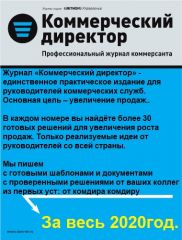 Журнал «Коммерческий директор» - единственное практическое издание для руководителей коммерческих служб. Основная цель – увеличение продаж..