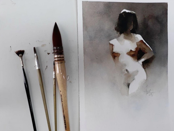 На трех онлайн-практикумах Франка Перро мы выполняем шесть акварельных зарисовок в стиле «ню»: