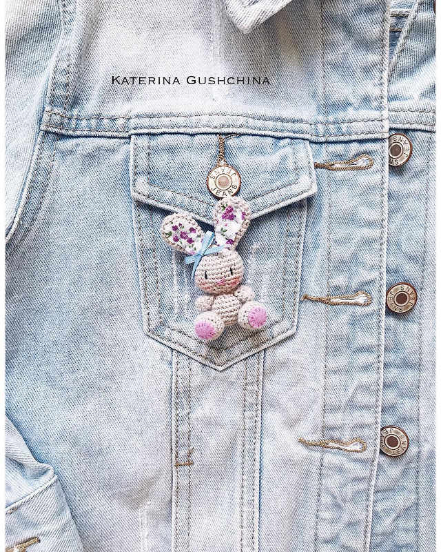 [Амигуруми] Брошь «Зайка» (Екатерина Гущина)