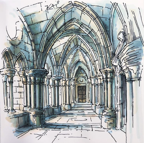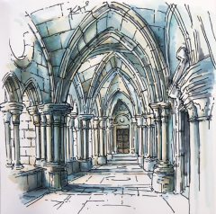 ?Нарисуем свои первые скетчи готических строений, в которых мы запечатлеем атмосферу готической архитектуры. На этом этапе это будут уже не отдельные элементы, а их взаимодействие, интересные узловые решения.