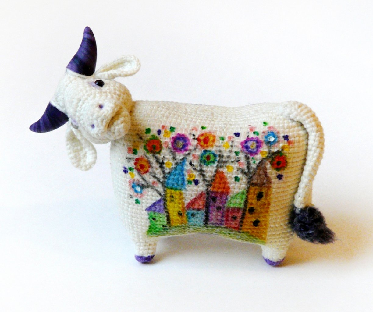 коровушка с боками, расписанными акварелью (краски и карандаши)