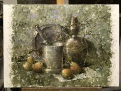 На втором занятии в течении 5 часов исполним на холсте собственный образ человека. Свой реалистический рисунок превратим в символ, используя цветовые отношения Врубеля. Намешивая каждый мазок на палитре, приучим себе к привычке Мастера относиться к живописи, как к россыпи драгоценных камней.