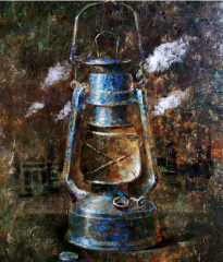 Вы исполните картину, где обычный старинный фонарь станет символом загадочной многогранной архитектуры. Цветовой контраст сине-голубого и золотого оттенков создает торжественное настроение. А мелкие графические аксеcсуары сложной конструкции фонаря станут интересными загадками для зрителя. Возможна ассоциация с пизанской башней…