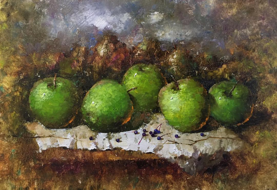 Мастер класс живописи Елены Ильичевой 'Пять зеленых яблочек'