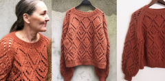 Объемный, но мягкий и воздушный свитер оверсайз от датского дизайнера Пэрнил Ларсен вяжется спицами в бесшовной технике сверху вниз от горловины по кругу. Хорошую посадку в области горловины свитеру обеспечивает формирование укороченными рядами, а невероятно мягкий и не тяжелый объем придаст модели добавление тонкого мохера.