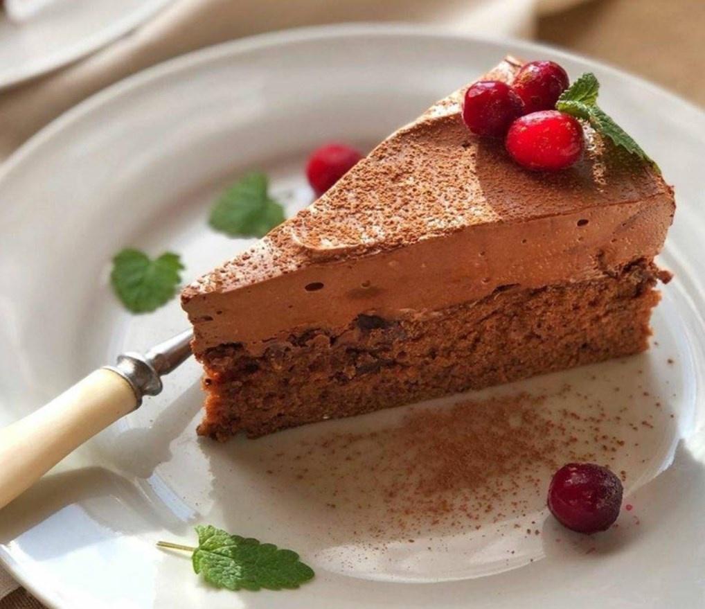 Трюфельный шоколадный мусс, хрустящий слой с черносливом и мягенький пропитанный бисквит - просто песня для тех, кто любит огненный результат без особых заморочек. Ещё один вариант декора покажу, кстати.