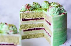 Бисквитный торт Фисташка-малина-лайм: 2 ВИДА фисташковых бисквитов, малиновый мармелад, мусс фисташка-матча, лаймовый крем-чиз, 2 ВИДА чистового оформления торта.