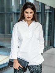 Деловой стиль невозможно представить без белой блузки. Нашу модель отличает непринужденный крой с застежкой поло на скрытой кнопке, ластовицами, карманами и разрезами в боковых швах.