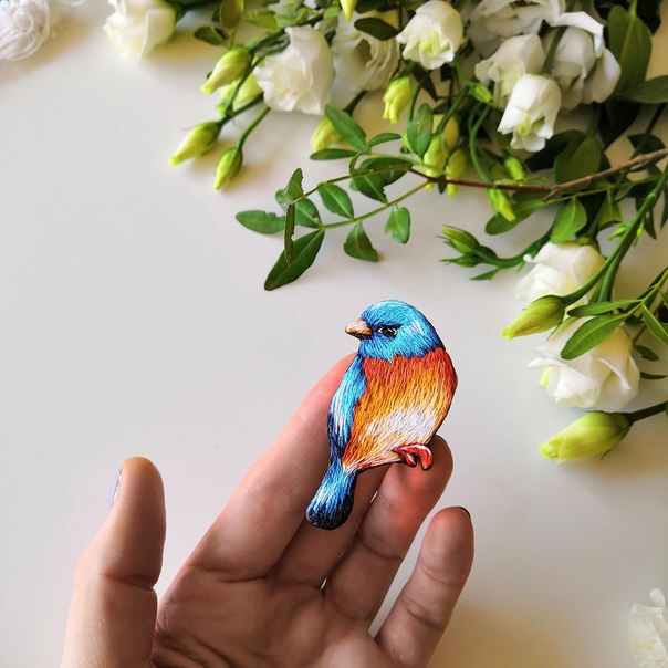 Работать в одну и две нитки, имитируя стежками легкие пёрышки;