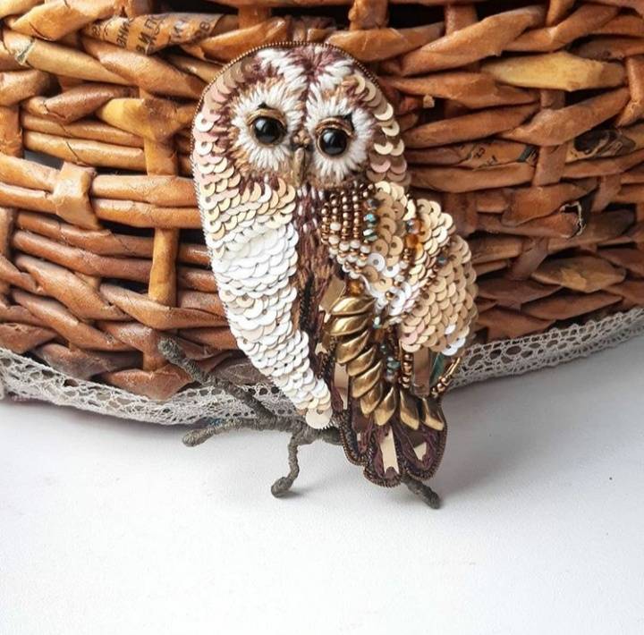 Брошь Сова на ветке (nastya.kez)
