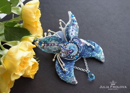 Брошь цветок 'Deep lake' более 150 страниц информации, более 300 фотографий процесса
