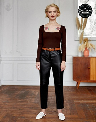 Рекомендуемый материал для пошива: мы рекомендуем использовать для данной модели искусственную кожу средней толщины и плотности с небольшим растяжением; подкладочные ткани – вискоза, шелк.