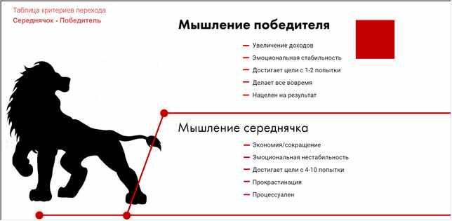 Изучите сравнительные характеристики мышления середнячков и победителей