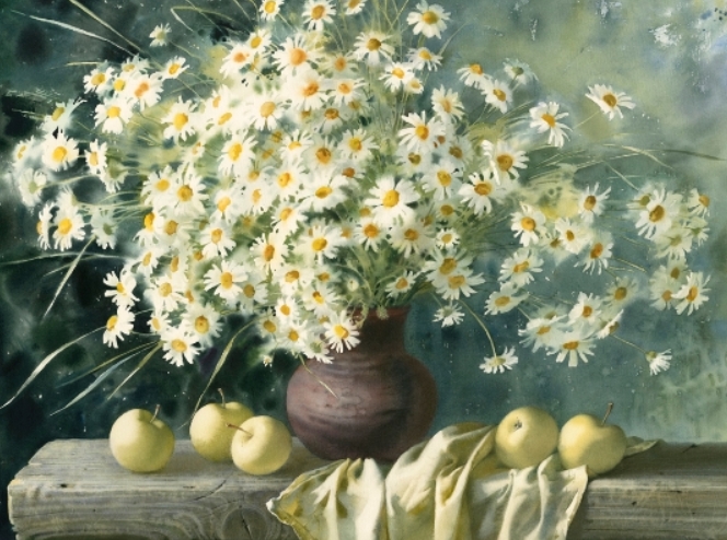 Букет из множества цветов подобен большой симфонии, сложенной из отдельных звуков. Как возможно в музыке услышать отдельные звуки и записать их нотами? Схожий вопрос применим к живописи, и ответ кроется в постижении изобразительной грамоты. На новом занятии вы будете изучать её на примере букета ромашек.