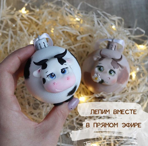 Слепим бычка на ёлочном шаре.