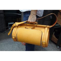 Кожаная стильная сумка оригинальной цилиндрической формы, вместительная, на молнии, с удобной ручкой для переноски и ремнем через плечо. Рекомендуется шить из кожи толщиной около 2 мм.