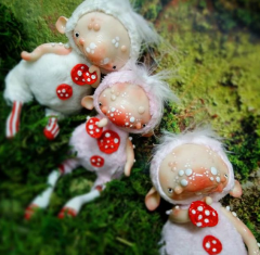 Выполнен в смешанной технике, мордочки и лапки из полимерной глины.