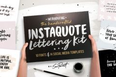 Коллекция ручной работы из 10 шрифтов и 14 шаблонов социальных медиа, предназначенных для работы в гармонии. Вы можете не только смешивать и сопоставлять разные стили рукописных шрифтов, чтобы создавать красивую типографику, вы можете также разместить ее на обычном, ручном фоне в мгновение ока.
