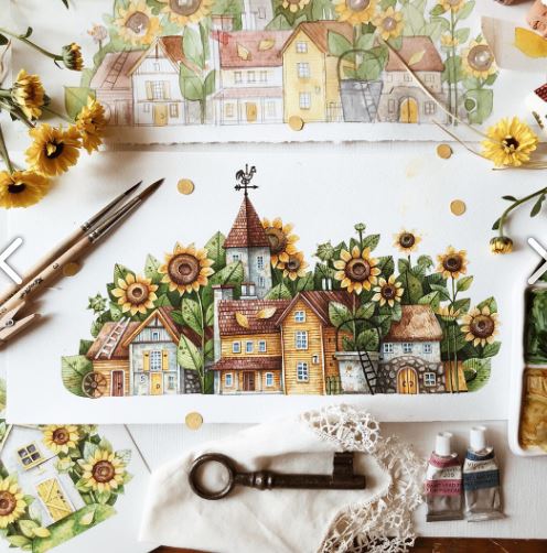 Рисовать цветы и домики любимое занятие Автора, что может быть лучше? Только нарисовать целую улицу в цветущем саду!