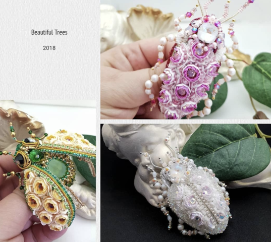 На нем мы научимся делать жуков с крыльями и усложненой оплетки тела, объемного жука и жука на плоской основе Мы с вами научимся работать с новыми материалами, работать с пайетками и другими допами.