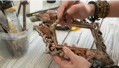 Многослойное окрашивания применяются на любых рельефных поверхностях: это могут быть готовые формы (например, багет или гипсовая рамка), объемные элементы из самозатвердевающей пасты, древесной пульпы или пластика, рельеф шпатлевкой по трафарету. Также эти приемы пригодятся тем, кто увлекается микс медиа.