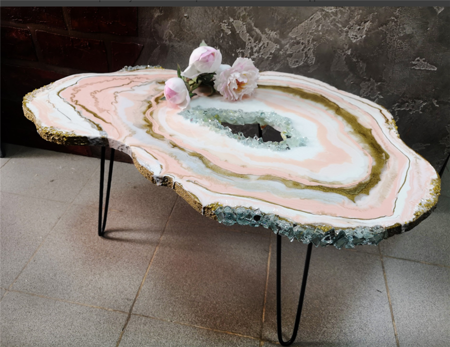 • Новая форма столешница (из чего и как), детали заливки и работа со смолой, чернилами и новыми пигментами, работа только со светлыми оттенками.