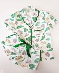 Пижама «Соня» состоит из двух частей: шорты с двумя карманами; рубашка с цельнокроеным воротником до середины бедра, на пуговицах.
