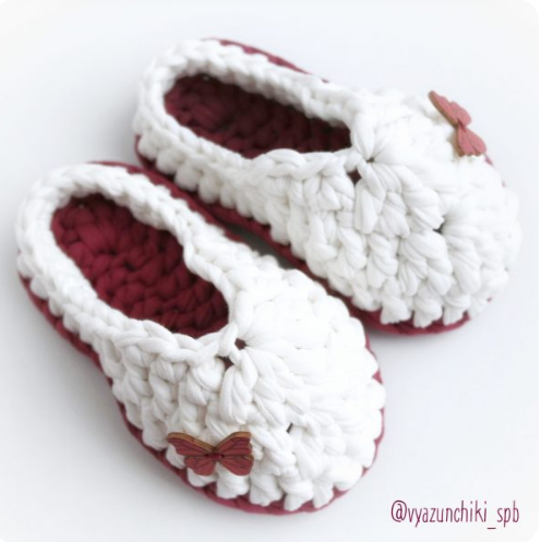 Мастер-класс по вязанию крючком детских тапочек из трикотажной пряжи. Тапочки с закрытым верхом и анатомической подошвой (для правой и левой ноги).