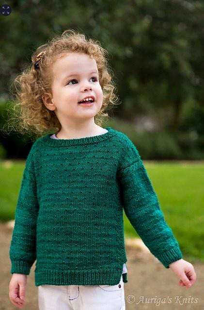 Тело пуловера вяжется по кругу до подмышек, после чего перед и спинка вывязываются отдельно и сшиваются по линии плеча. Рукава набираются из пройм и вяжутся вниз по кругу. Петли для горловины также набираются из полотна, и резинкой вывязываются по кругу.