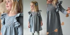 В описании вязания детского платья спицами даны инструкции для восьми размеров: