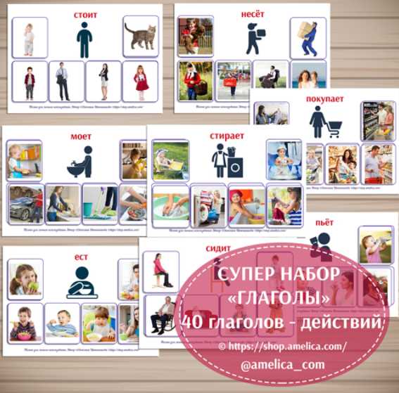 Дидактическая игра «Глаголы» — полный комплект — 40 глаголов.