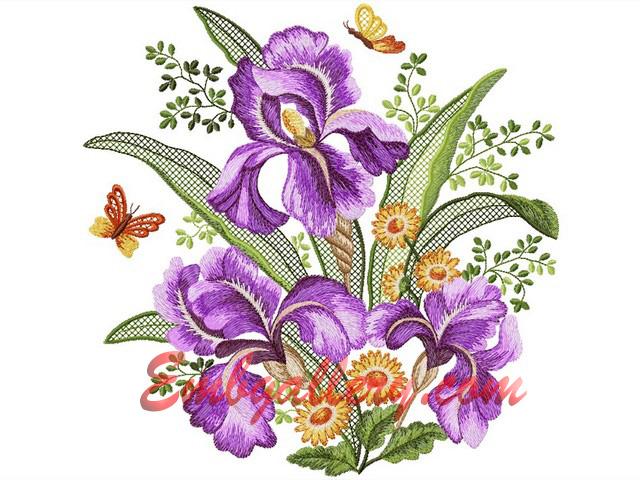 Дизайн машинной вышивки 'Ирисы и маргаритки'_302 х 301 мм [embgallery]