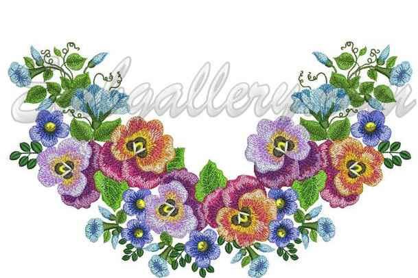 Дизайн машинной вышивки 'Летний сад' - горловина