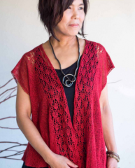 Летний вязаный кардиган Tulip демонстрирует красивое сочетание более плотного полотна, которое вяжется двумя нитями пряжи, и более тонкого полотна, которое вяжут в одну нить. Полочки и спинка украшены очаровательным ажурным узором. Спинка связана двумя нитями пряжи. Полочки вяжут в одну нить, что позволяет создать нежное, воздушное полотно. Этот ажурный узор связан сверху вниз, и при повороте получается повторяющийся мотив тюльпана. Кардиган имеет интересную конструкцию. Во-первых, вы вяжете центральную панель спинки, после этого поднимаете петли на каждой стороне панели спинки для работы правой и левой сторон спинки. После поднимите петли по плечу и вяжите сверху вниз полочки. Полочки имеют формирования по центру и боковым краям, что позволяет кардигану струиться во время носки.