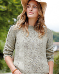 Вязаный пуловер Mareel с небольшим круглым вырезом горловины с красивым оформлением линий плеч и реглана выполнен лицевой гладью, на фоне которой эффектно выделяются детали, связанные ажуром и рельефными косами.