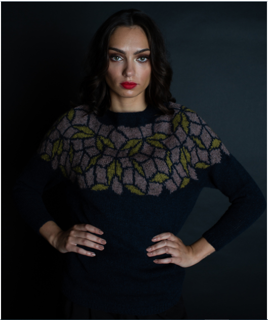 Вязаный пуловер Topaz - это упражнение в вязании потрясающего цветного узора. Вы можете скомбинировать любые цвета, чтобы создать идеально подходящий вам пуловер. Цвета пряжи Tukuwool, показанные здесь - глубокий, темно-синий с меланжевыми темно-розовыми и цитрусовыми нотами - можно носить одинаково хорошо с парой джинсов и зимних сапог, а так же с красивой юбкой в полный рост.