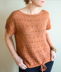 Показанный образец размера Large с припуском на свободу облегания 18 см., связан из пряжи Plucky Knitter Crewbie, цвет “Aperitif”
