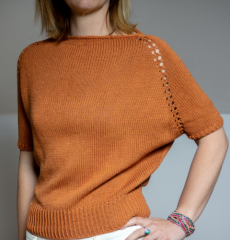Вязаный пуловер Сalvi выполнен вкруговую сверху вниз с рукавами реглан, с горловиной сформированной немецкими укороченными рядами. Припуск на свободу облегания 30 - 40 см.