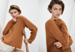 Женский джемпер вязаный спицами текстурным узором из кашемира.