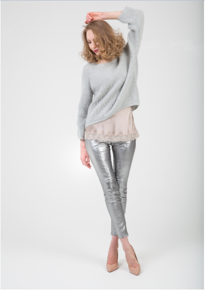 Джемпер вяжется снизу вверх отдельными деталями. Декоративные регланные убавки. Горловина круглая. Рукав втачной со швом, пройма прямая. Основной узор – «жемчужная резинка».
