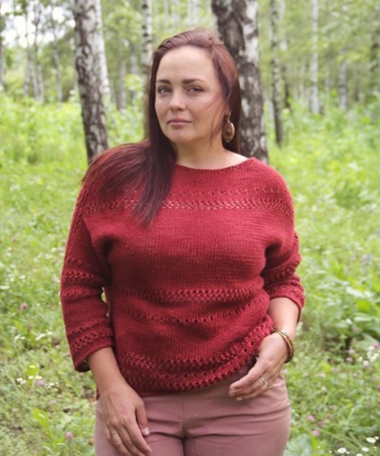 Джемпер вяжется одной деталью сверху вниз до начала пройм, затем отдельными деталями спинка и перед, далее тело по кругу. Рукава вяжутся от пройм.