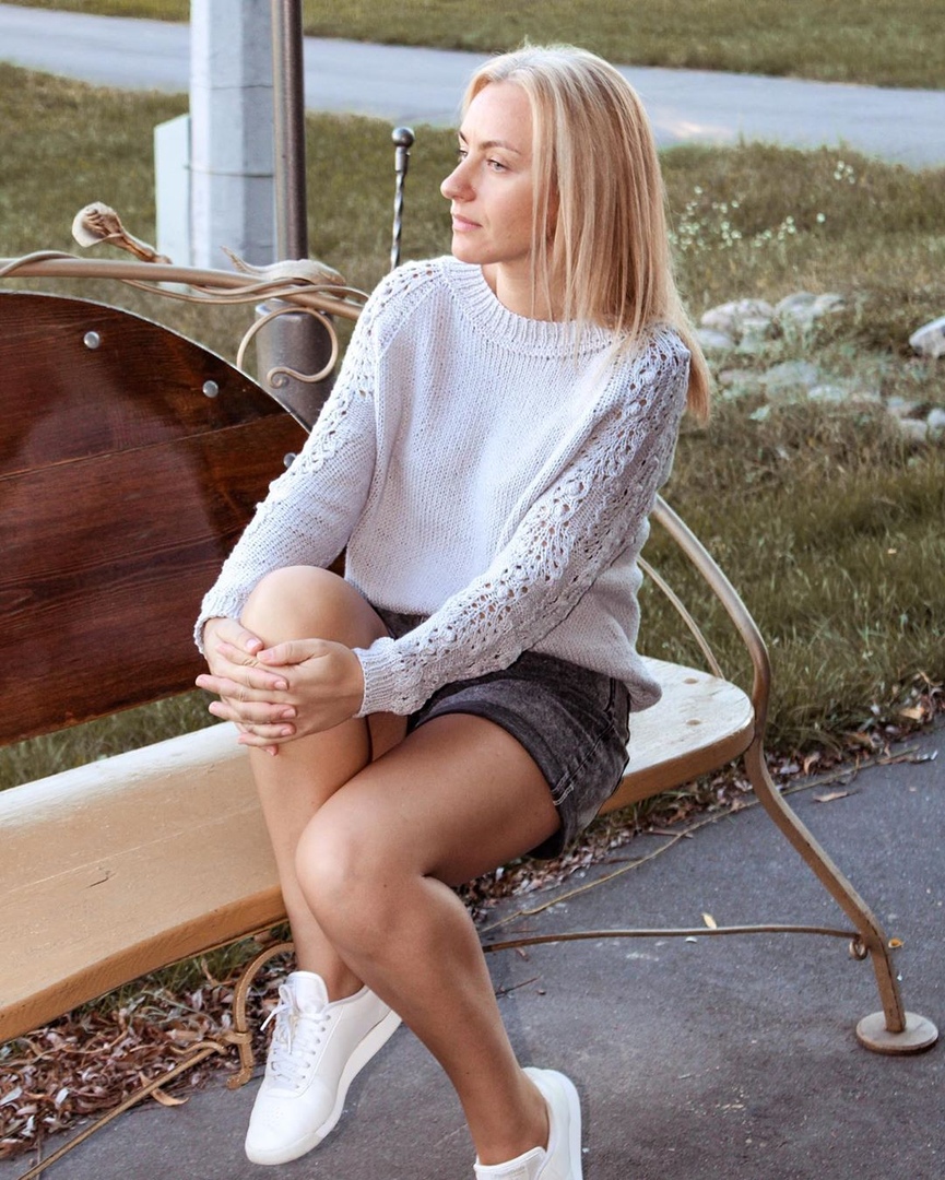 - джемпер вяжется сверху вниз, реглан с ростком;