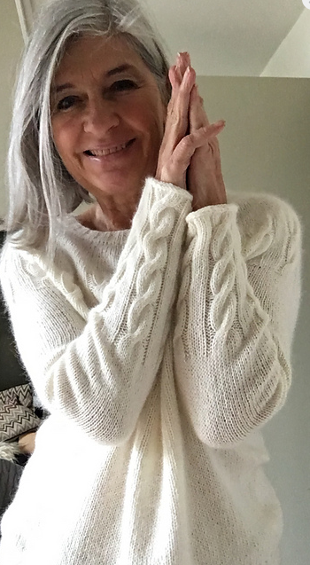 Джемпер вяжется без швов сверху вниз. Для лучшей посадки сначала выполняются укороченные ряды.