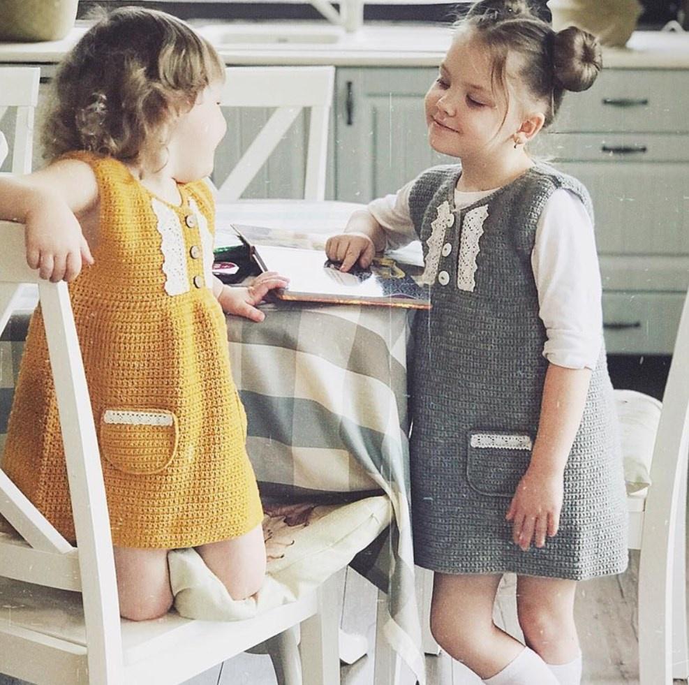 Прекрасно смотрится и на малышках и на девочках постарше ) Летнее платье из хлопка, теплый сарафан, вариант школьной формы, наряд на новогодний утренник (вяжем ушки лисички или зайчика на ободок )
