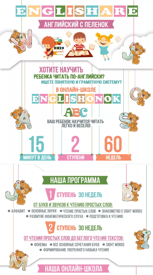Курс основан на авторской методике ведущих специалистов по раннему английскому, подтвержденной реальными результатами.